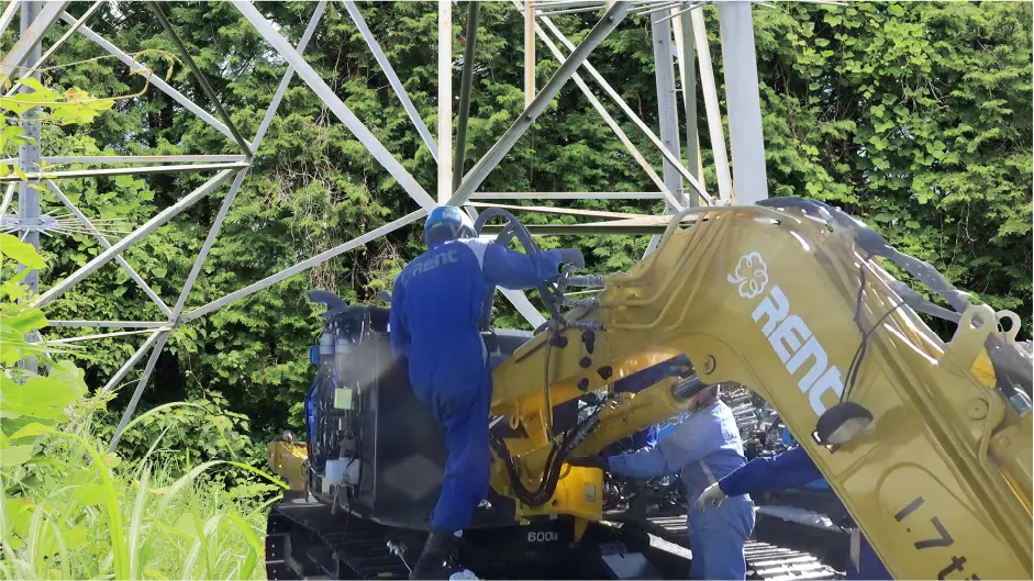 山岳地の現場(鉄塔送電など)へ重機を持ち込む、分解・組立