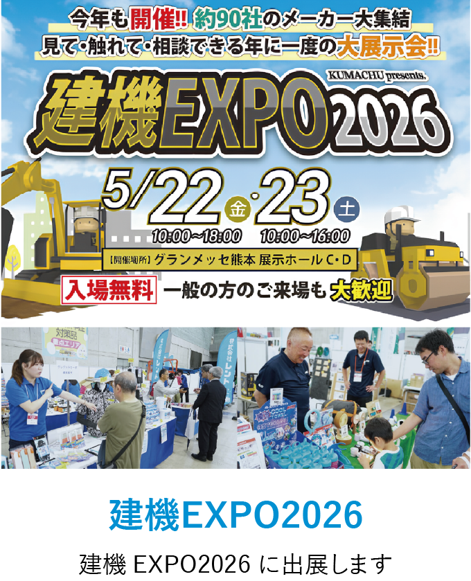 熊本中央リース株式会社主催「建機EXPO2026」出展のお知らせ - 2026/04/13拠点情報