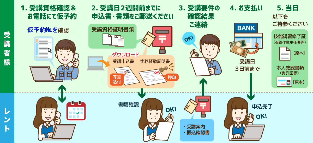 受講案内、振込確認書をFAX・郵送にてお送りいたします。 |