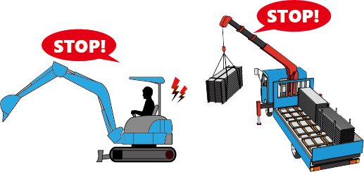 レーザーで設定した監視エリア内への人や物の侵入を瞬時に検知します。侵入を感知すると警報を発するとともに、連動した重機の動作を停止させることが可能です。